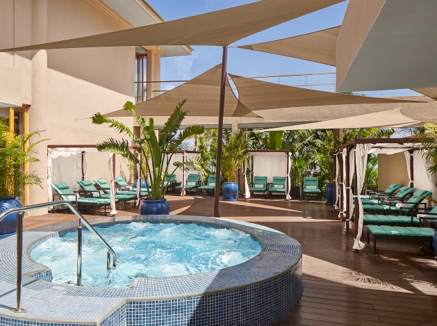 The 261 guestrooms and suites have been designed with modern luxury in mind, each offering stunning ocean views and an outside terrace or balcony. The colour palette takes inspiration from the hotel's surroundings with natural creams and whites accented with pops of blue. Custom headboards are reflective of the rustic materials found across the island, with locally designed fabrics adding a touch of character. Bathrooms have been redesigned to the highest specification, complete with a separate shower and large oval bath, marble floors, and plenty of fluffy towels and toiletries.