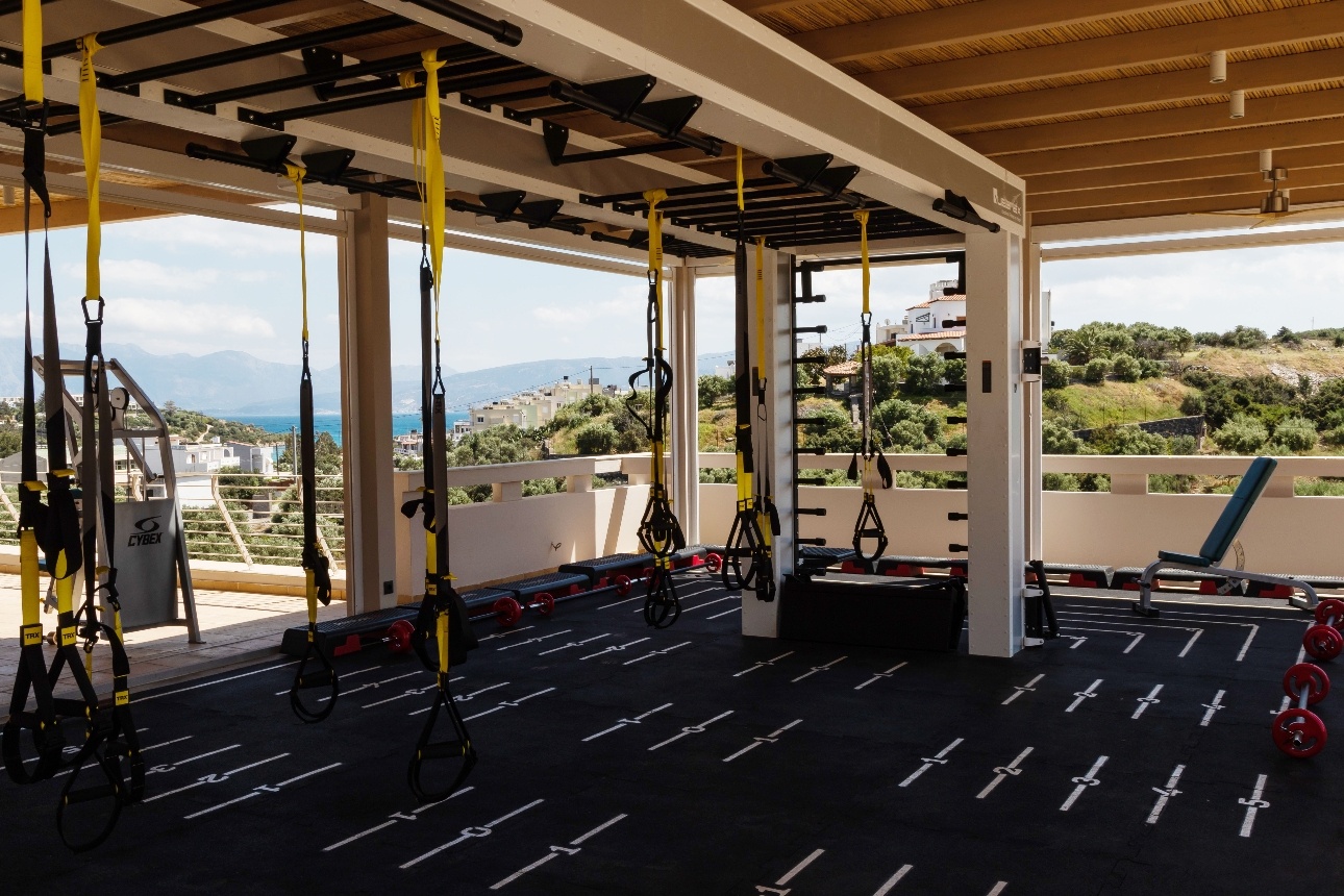 outdoro gym with equipement open walls with panormanic views
