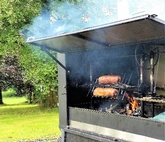 Authentic Outdoor Cooking: Spit roast & Barbecue over wood fire embers on our own unique equipment.