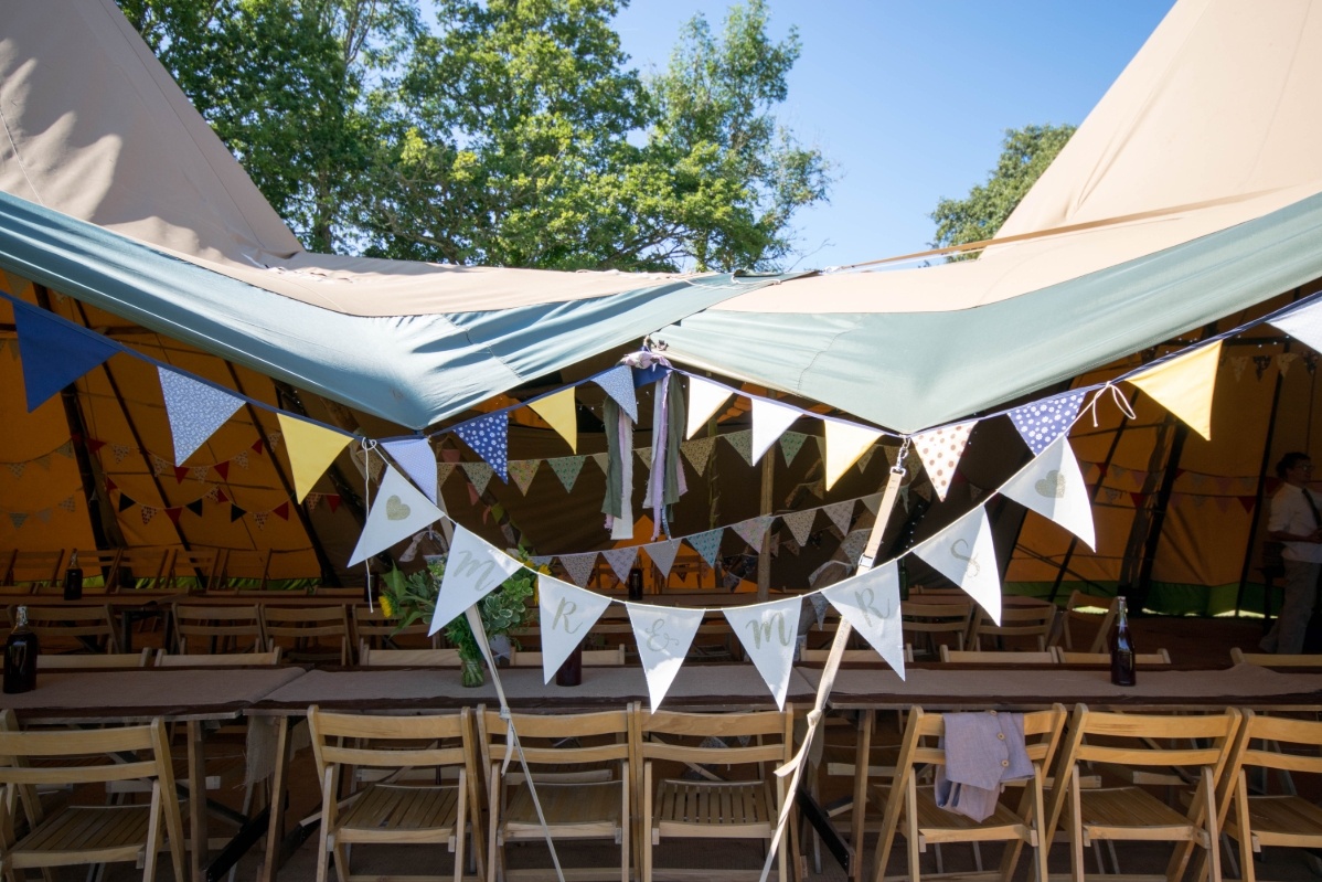 The site can be exclusively booked for a wedding for up to 170 guests in total and includes (but is not limited to) access from 4 pm on Friday until 10 am on Monday for weekend weddings; glamping for up to 36 guests; additional camping and campervan sites and parking available for all guests; the wedding glade in the woods decorated with haybales for the ceremony; a farm tractor and trailer ride for the couple, and no corkage charges.