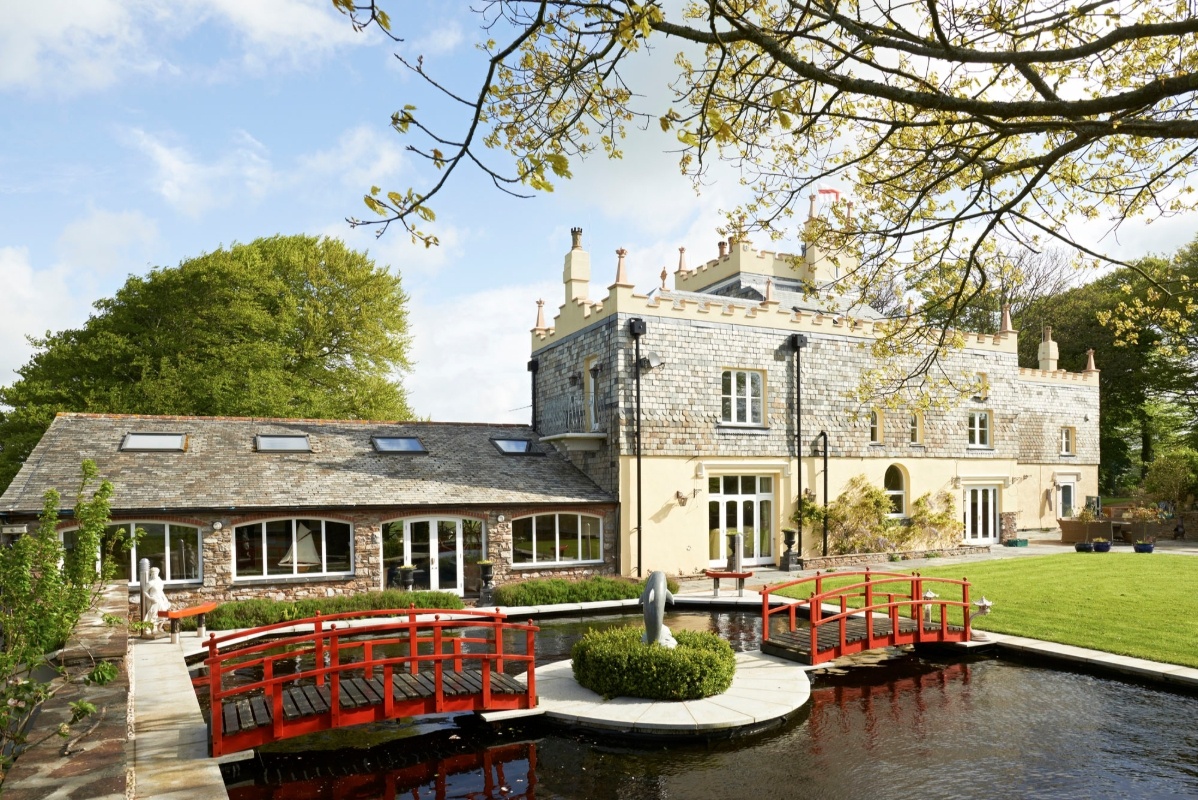 This country retreat wedding venue located in South Hams is a regal manor house in the style of a traditional English castle nestled in eight acres of picturesque grounds and an orchard. It boasts panoramic views across the rolling hills of Dartmoor and the coast at Salcombe. The venue marries historic features such as ornate cornices and stained-glass windows with many luxuries, including a bubbling hot tub, sumptuous bathrooms complete with Whirlpool baths and underfloor heating.