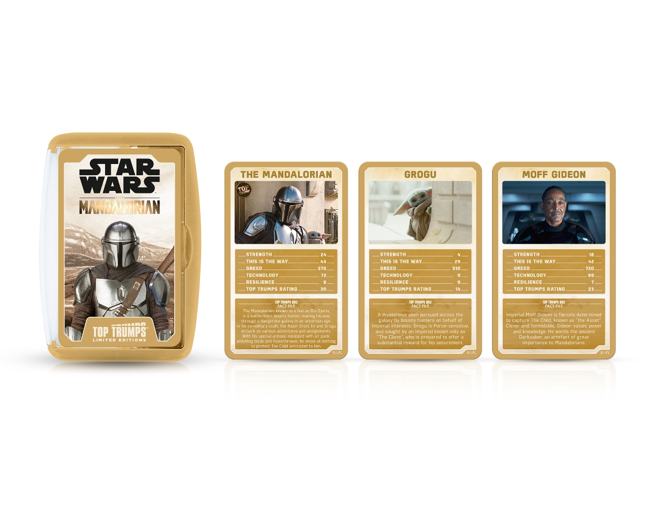 The Disney + smash it gets a brand new Limited Editions Top Trumps pack, with all the great characters from the space-western in a glorious gold case. Is Bo-Katan stronger than Ahsoka Tano? Is Kuiil as resilient as Grogu and does Boba Fett have better technology than the Mandalorian himself? Grab this brand new pack and find out!