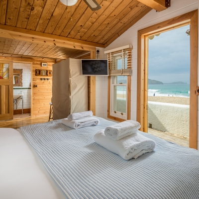 The following day will see guests take the plunge with a three-hour guided coasteering session in the picturesque fishing village of Mousehole, aimed to ignite adrenaline while offering a unique perspective of this spectacular stretch of Cornish coastline. As one of the fastest-growing adventure sports, coasteering is one for the daring, combining wild sea swimming with low-level traversing, bouldering, and steep cliff rock jumping. Physically challenging and mentally exhilarating, guests will put their recently learnt breathing techniques into action to calm the heart rate and blood pressure, mirroring how to cope with the body's reaction to stress in other aspects of life. Connecting with nature's blue spaces, guests will also discover how the rise and fall of the tides affect the coastal landscape, from the creation of tidal whirlpools to sea caves filled with natural wonder. Come afternoon, guests can explore the three miles of golden sands backed by dunes and coastal grasses with a picturesque coastal hike, opt for a bracing wild swim, or head back to the comfort of their beach house for a sumptuous soak in their private sunken cedarwood hot tub, soothe aching muscles in the barrel sauna or warm cold toes in front of the roaring log burner.