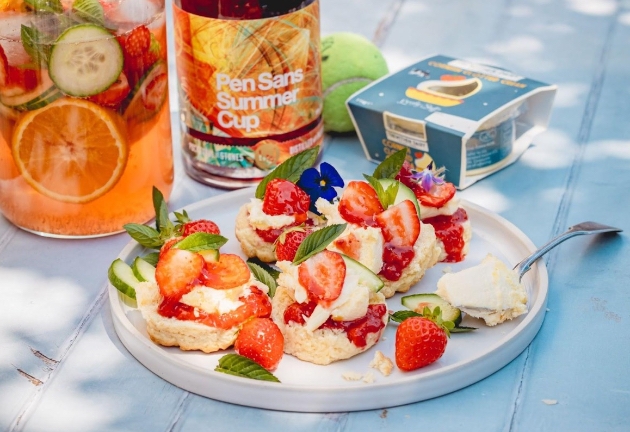 Inside the carefully curated hamper, there's a selection of premium products including Trewithen Dairy's award-winning golden crusted clotted cream, four scones (plain, fruit or gluten-free), a pot of Cornish strawberry jam, The Cornish Tea Company's tea bags or Cornish ground coffee and two cans of Pimms. Extra Pimms cans and a special Wimbledon Guest Towel can also be purchased as optional additions.