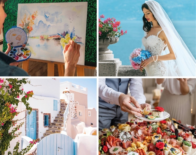 The best way to execute a travel-themed wedding is through decorations that hint to your love of travelling. This could include ceremony programs formatted as passport booklets, with all the necessary informations about your nuptials; a globe that your guests will sign instead of a guest book; or a fun travel-inspired quiz for one of your reception activities! For your floral decorations, take inspiration from a holiday – such as the hot pink bougainvillea flowers depicted in the summer musical hit Mamma Mia! The choice of venue depends on the weather as you'd ultimately want an al fresco vibe or more niche venues could be an airport hanger or a transport-inspired space – like a vintage train station. The cake could be decorated with geographical elements like maps, suitcases, or in the colours of the chosen country's flag. Your wedding dress or partner's outfit can be heavily influenced by a culture that deeply resonates with you. Accessories are another seamless way to infuse your passion of travelling into your ensemble. For instance, pair your dress with earrings or a bracelet that your significant other bought you from a boutique while on holiday during your relationship timeline.