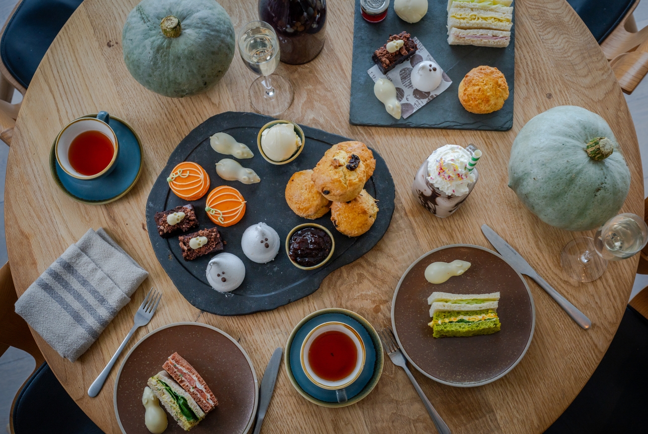 The experience includes a delicious high tea, featuring both sweet and savoury treats. Guests can indulge in blackcurrant macarons, marshmallow ghosts, maple pumpkin spice mousse, and smoked trout with cream cheese and chive served on a beetroot loaf. It's a feast for the senses, with no tricks—just plenty of delicious treats.